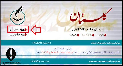 3 - ورود به سایت گلستان و انتخاب گزینه ورود به سیستم