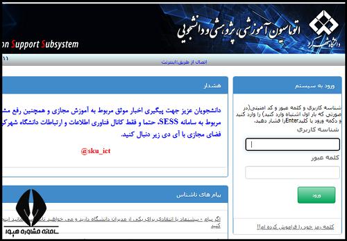 ✔️ دانشجویان جهت انجام امور دانشگاهی بایستی به سامانه سس دانشگاه به نشانی sess.sku.ac.ir مراجعه کرده و جهت ورود، نام کاربری و رمز عبور را وارد نمایند که توضیحات تکمیلی در متن مقاله بیان گردیده است.