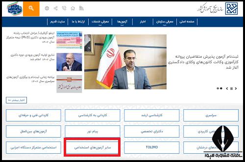 مراجعه به سایت سازمان سنجش و آموزش کشور به نشانی sanjesh.org و انتخاب گزینه "سایر آزمون های استخدامی" از منوی سایت
