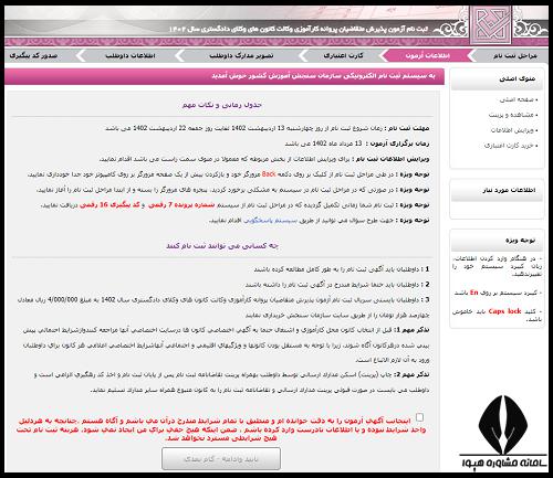 انتخاب گزینه "ثبت نام آزمون وکالت مرکز وکلای قوه قضاییه ۱۴۰۴ "