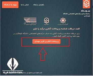 در این صفحه قابلیت پرداخت از دو روش ورود به سامانه و یا پرداخت آنلاین کاربر مهمان وجود دارد.