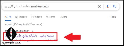 متقاضیانی که قصد آشنایی و ورود به سایت ساتب دانشگاه علمی کاربردی را دارند می بایست مطابق راهنمای تصویری زیر، ابتدا سامانه ساتب علمی کاربردی sateb.uast.ac.ir را در صفحه جستجوی گوگل سرچ نمایند.