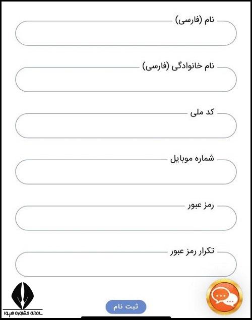 ندر ادامه می توانند نام، نام خانوادگی، کد ملی شماره موبایل خود را وارد کنند، سپس یک رمز عبور برای خود انتخاب و بر روی گزینه ثبت نام کلیک کنند.