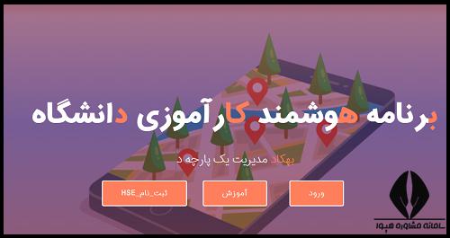 با توجه به تصویر بالا ابتدا واژه برنامه هوشمند کارآموزی دانشگاه با تیتر بزرگ به رنگ سفید قابل مشاهده است که در زیر آن شعار بهکاد مدیریت یکپارچه دانشجویان با اساتید و ارتباط صنعت با دانشگاه درج شده است. در انتهای عکس سه لینک ورود، آموزش و ثبت نام HSE به صورت دکمه نارنجی رنگ قرار دارد. دانشجویان و اساتید با کلیک بر روی دکمه "ورود" به صفحه بعد مطابق تصویر زیر منتقل خواهند شد.