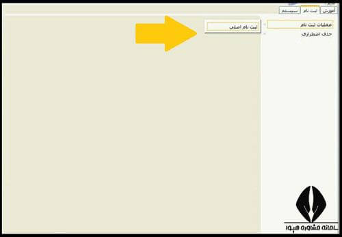 برای انجام فرایند انتخاب واحد می بایست مطابق تصویر زیر از منوی ثبت نام، گزینه "ثبت نام اصلی" را انتخاب نمایند.
