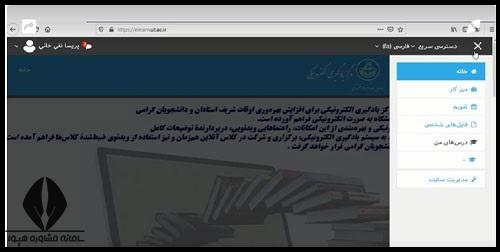 مرحله دوم: اساتید با مراجعه به منوی «میزکار» از بالای صفحه، می توانند به ایجاد کلاس مجازی در تاریخ دلخواه، ایجاد تکالیف و... بپردازند.