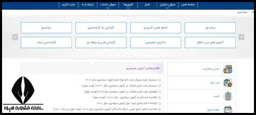 در ابتدا افراد باید آدرس اینترنتی sanjesh.org را در مرورگر خود وارد کرده تا به صفحه اصلی سایت دسترسی داشته باشند. سپس همان طور که در تصویر زیر مشاهده می شود، باید روی گزینه سراسری کلیک کرد تا به بخش های مربوط به آزمون سراسری دسترسی داشت.