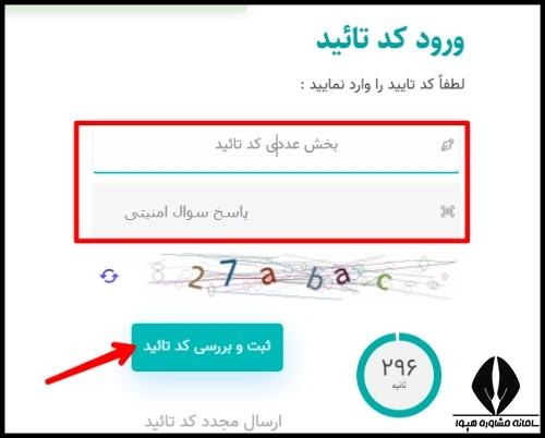 کد تایید شماره تلفن همراه یا احراز هویت از طریق پیام کوتاه برای متقاضیان ارسال شده و می توان نسبت به درج آن در فرم اقدام کرد.