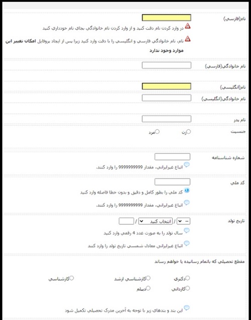 اطلاعات خواسته شده را به دقت در فرم ثبت نام به ترتیب زیر وارد کنید.