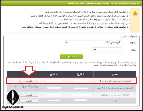 شماره داوطلبی و پرونده را وارد کرده و بر روی گزینه جستجو کلیک نمایید و در صفحه پیش رو جدید درخواست خود را به ثبت برسانید.