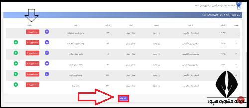 در این صفحه فرم انتخاب رشته قبلی داوطلب باز می شود که می تواند با زدن گزینه حذف اولویت، فرم انتخاب رشته خود را ویرایش کرده و در نهایت گزینه "ثبت نهایی" را انتخاب کنید تا ویرایش با موفقیت ثبت گردد.
