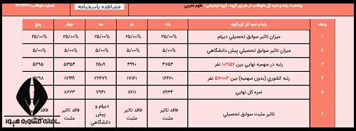در کارنامه کنکور سراسری رتبه، نمره کل نهایی و ... مشخص شده که می تونین برای کسب اطلاعات بیشتر به مقاله توضیحات کارنامه کنکور سراسری هیوا مراجعه کنین.