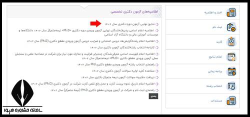 مراجعه به سایت sanjesh.org و انتخاب گزینه " دکتری تخصصی " از منو سایت سنجش
