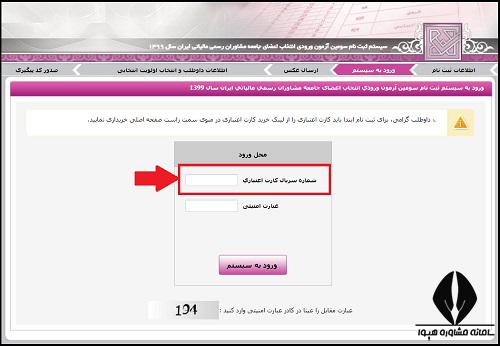 ورود به سامانه ثبت نام با استفاده از سریال خریداری شده