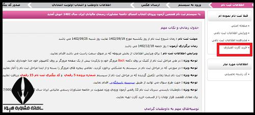 ورود به سامانه ثبت نام و انتخاب گزینه " خرید کارت اعتباری " از منوی سمت راست صفحه و پرداخت هزینه تعیین شده