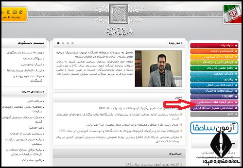 ورود به صفحه جدید و کلیک بر گزینه دریافت کارت ورود به جلسه آزمون