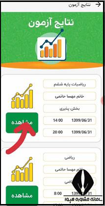 در این بخش دانش آموز پس از اتمام سوالات آزمون و پایان یافتن آن به دنبال نمره دریافتی خود و نتیجه آزمون انجام شده خواهد بود. مراحل مشاهده نتایج آزمون به ترتیب زیر می باشند :