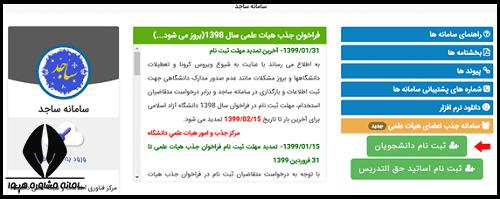 1داوطلبان باید وارد سامانه ساجد sajed.iau.ir شوند و بر روی گزینه ثبت نام دانشجویان کلیک کنند.