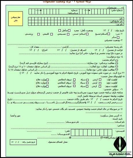 2مشخصات درخواست شده در برگه اعزام به خدمت را وارد کنید.