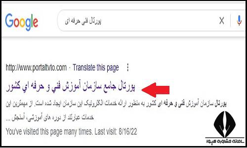 ابتدا داوطلبان سایت سازمان آموزش فنی و حرفه ای کشور به نشانی portaltvto.com را در مرورگر خود جستجو کرده و وارد صفحه اصلی این سایت شوند.